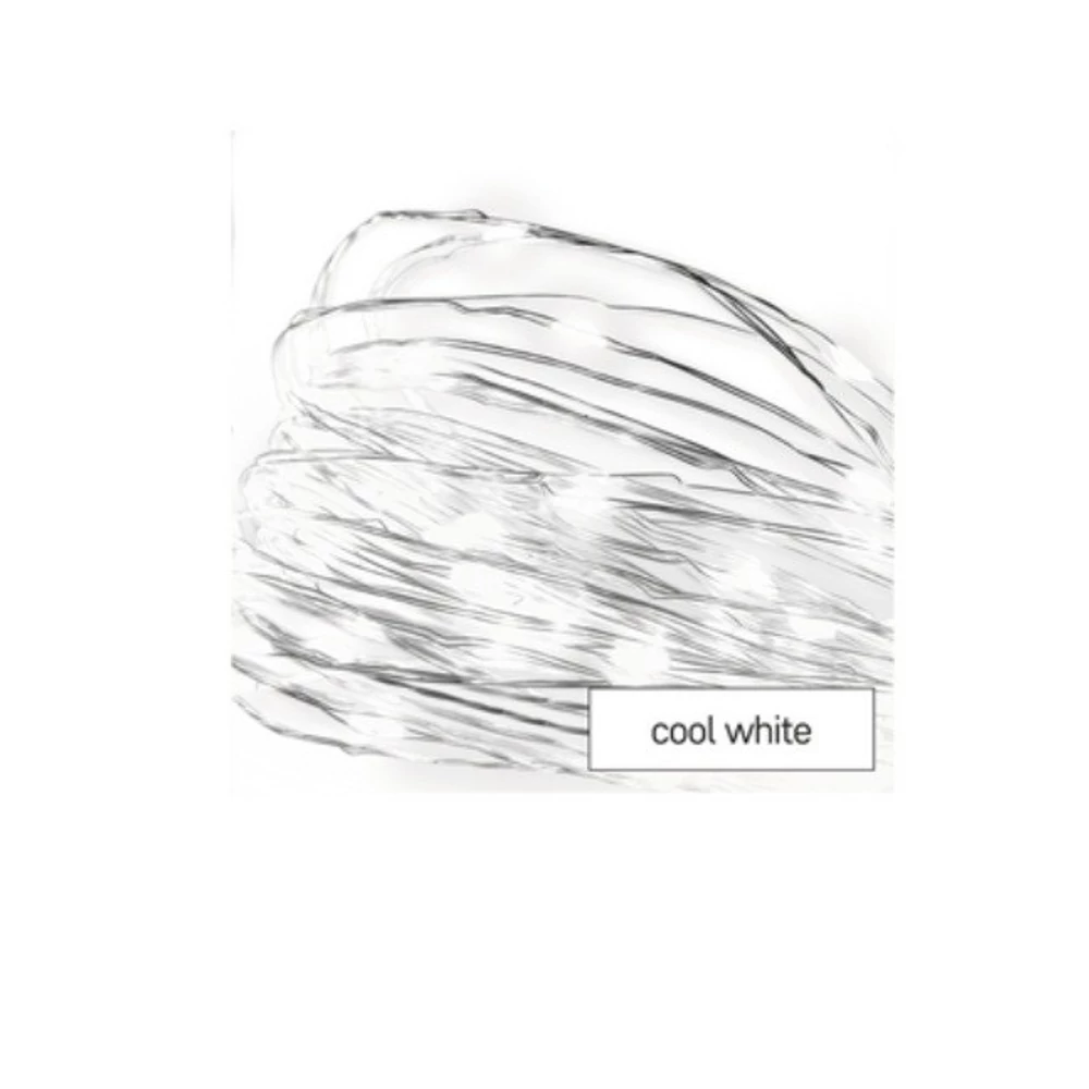 nano fényfüzér, ezüst, fény színe: hideg fehér, méretek: 0,9 m, használat: beltéri, tápellátás típusa: elem (2× AA), értékesítési csomagolás: 1 db, doboz