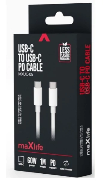MAXLIFE USB-C-USB-C KÁBEL 1M 60W FEHÉR