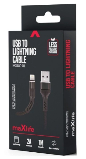 MAXLIFE USB-LIGHTNING KÁBEL 1M 2A BL NYL
