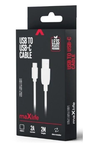 MAXLIFE USB-USB-C KÁBEL 2M 2A FEHÉR